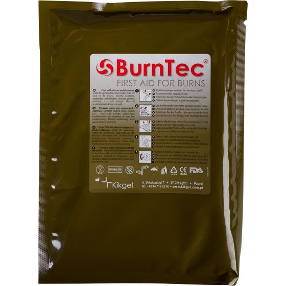 BurnTec® is CE marked, and it is currently being utilized in European countries. This hydrogel dressing is different from other burn first aid dressings due to its stable-sheeting hydrogel structure. The dressing has been strengthened with a medical-quality non-woven fabric which makes it easy to handle. This stable structure eliminates the risk of spilling or damaging the cooling hydrogel. In other words, the hydrogel stays over the burn area and prevents the gel from spilling off body surface area.